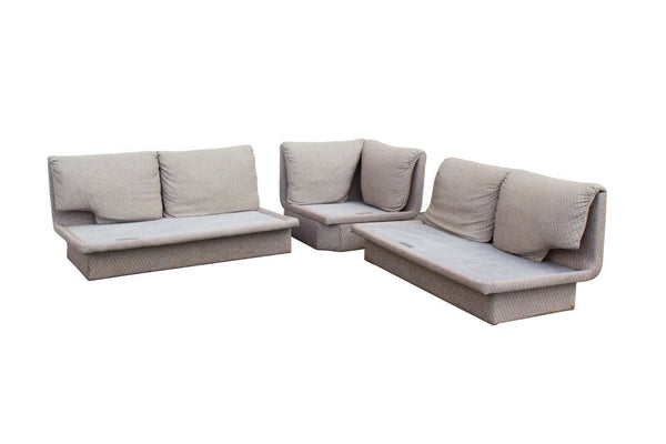 Loungey three piece sectional sofa by Bernhardt. Cool L-shaped sides, flip over back cushions, sleek profile. Excellent livable size- really nice scale to this piece.
